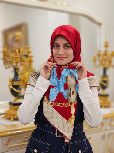 روسری ابریشم ژاکارد قرمز سایز ۱۱۰