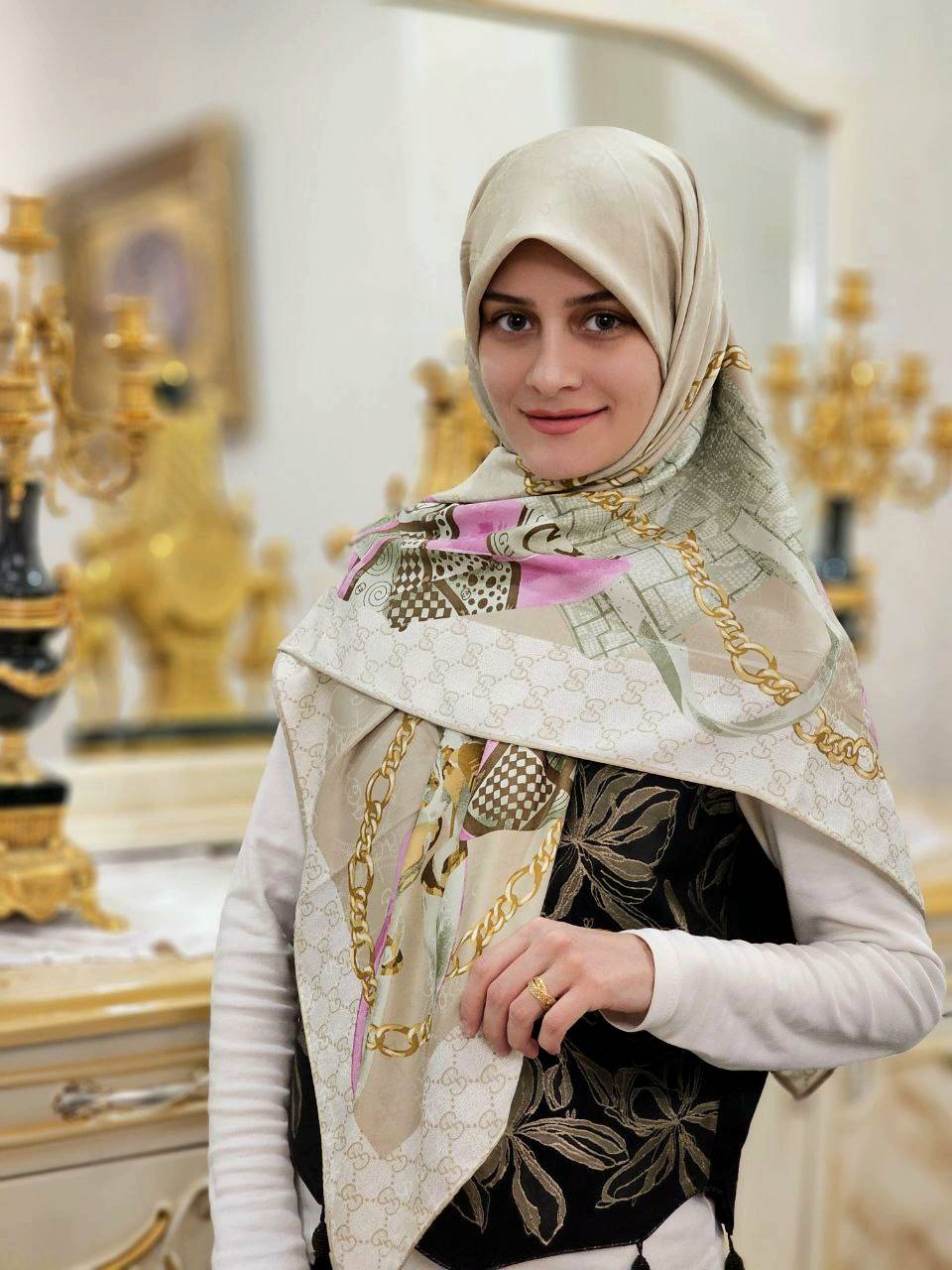 روسری ابریشم ژاکارد کرم سایز ۱۱۰