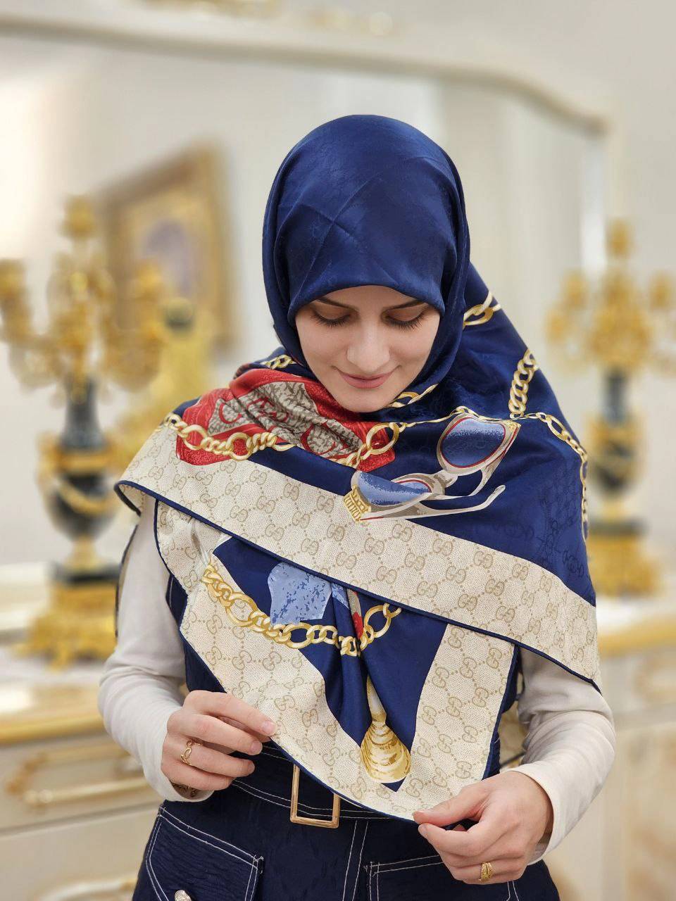 روسری ابریشم ژاکارد سورمه ای سایز ۱۱۰