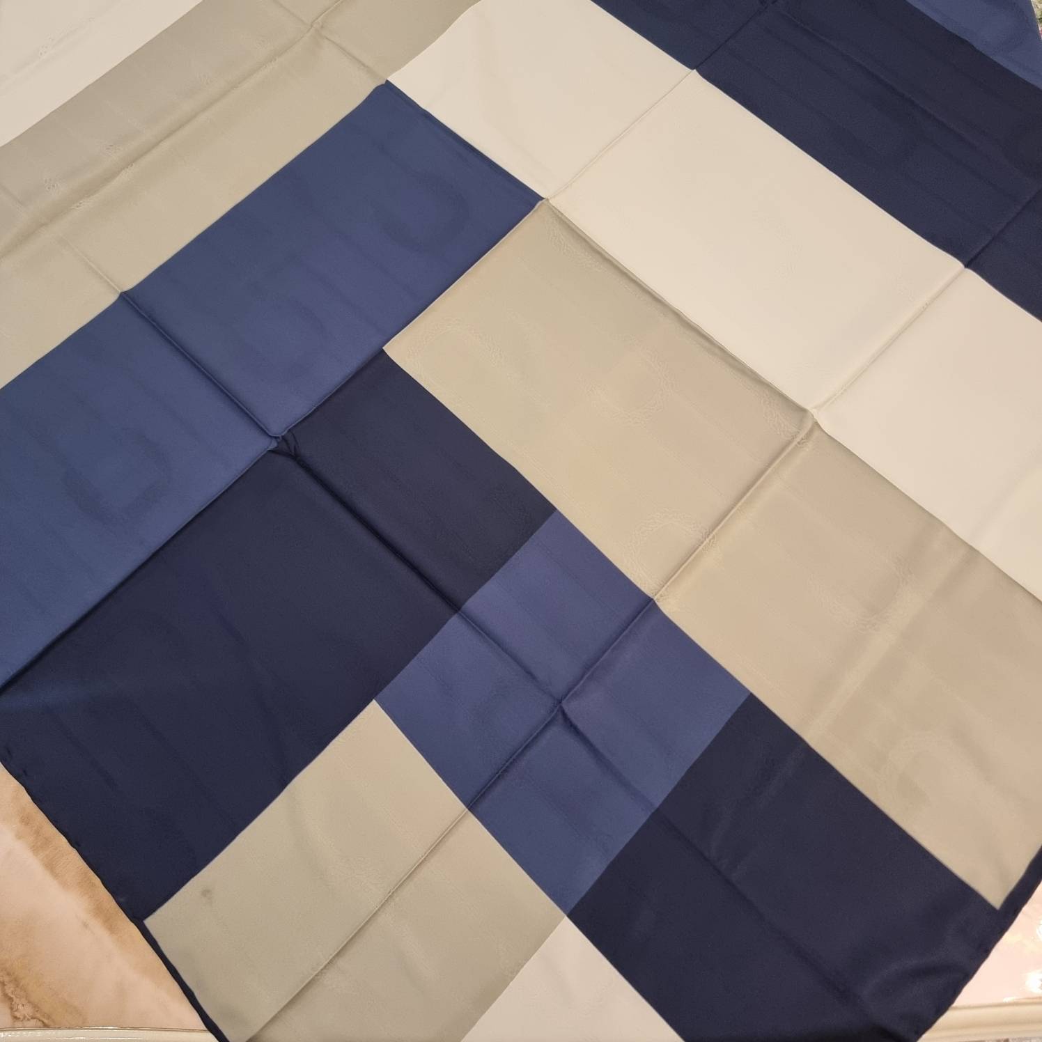 روسری ابریشم ژاکارد سورمه ای نسکافه ای