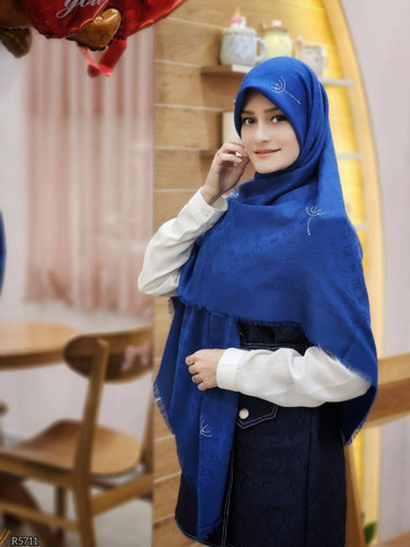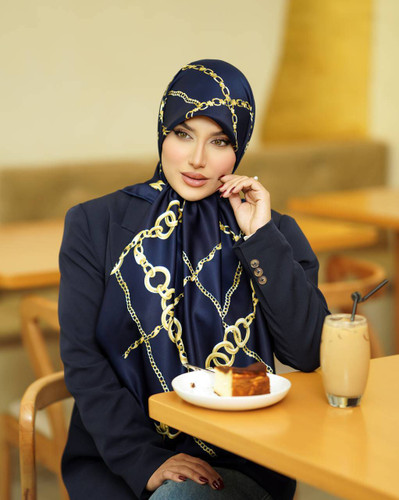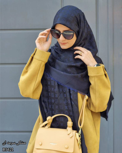 روسری ابریشم ژاکارد سورمه ای نسکافه ای
