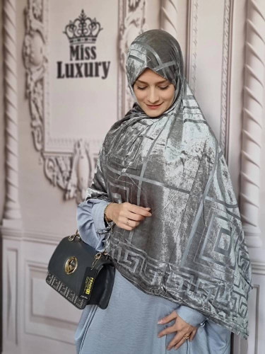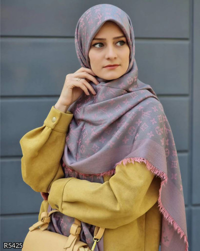 روسری ابریشم توییل ژاکارد طوسی مشکی