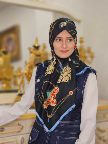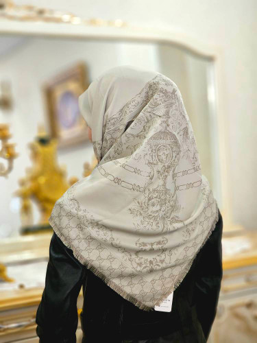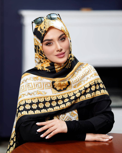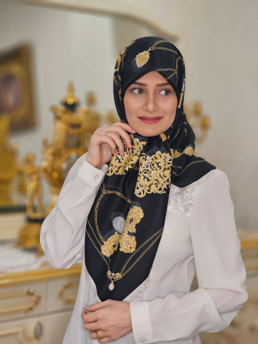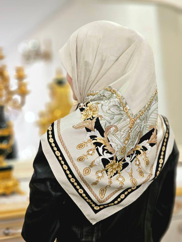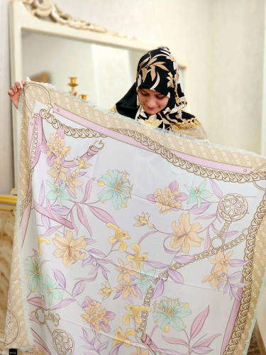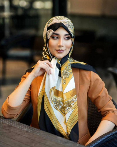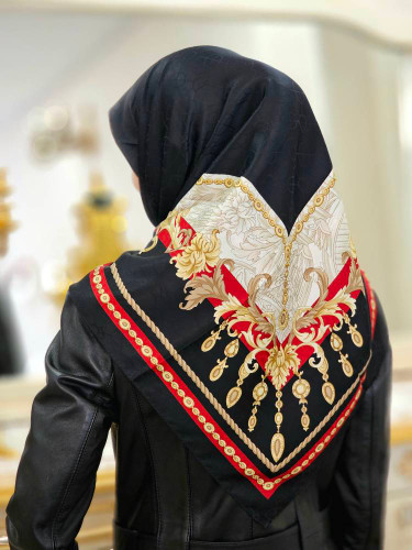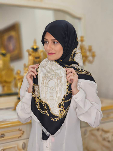 روسری ابریشم ژاکارد وارداتی مشکی کرم