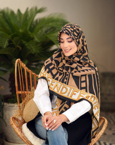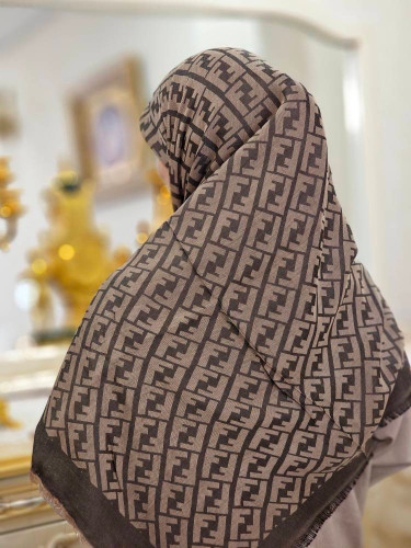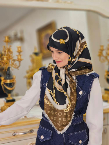 روسری توییل ابریشم ژاکارد مشکی نسکافه ای