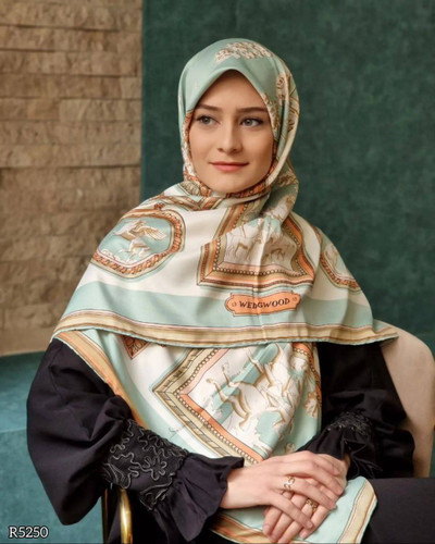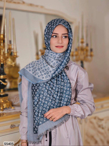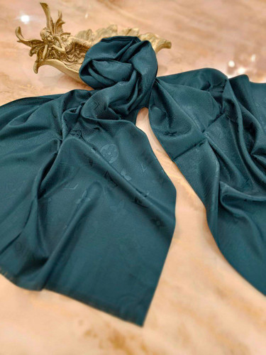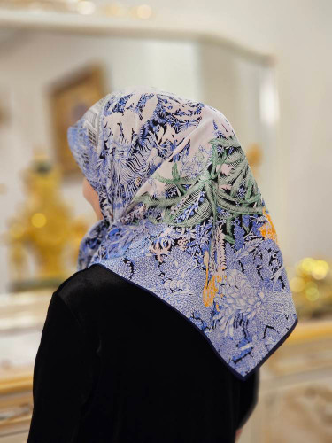 روسری ابریشم ژاکارد وارداتی آبی کرم طلایی
