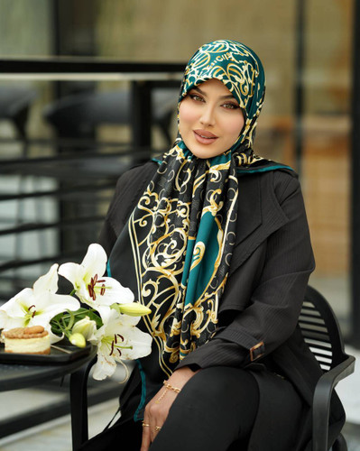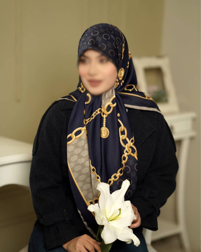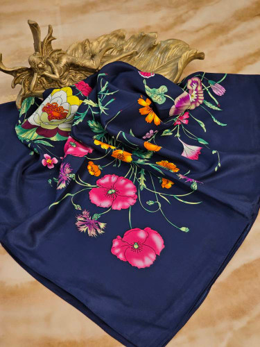 روسری ابریشم ژاکارد سورمه ای طلایی