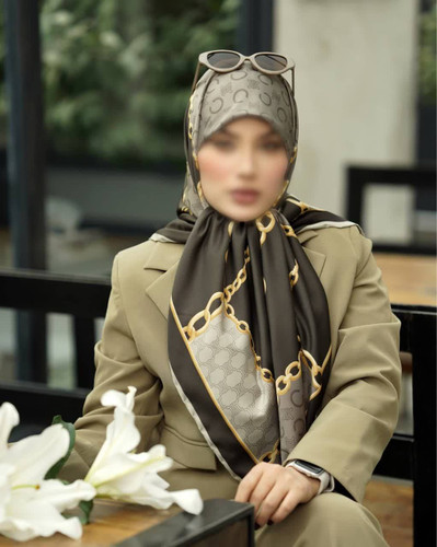 روسری ابریشم مستر قهوه ای ریشه سوزنی