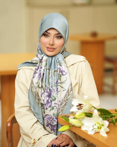 روسری ابریشم مستر ریشه سوزنی آبی روشن