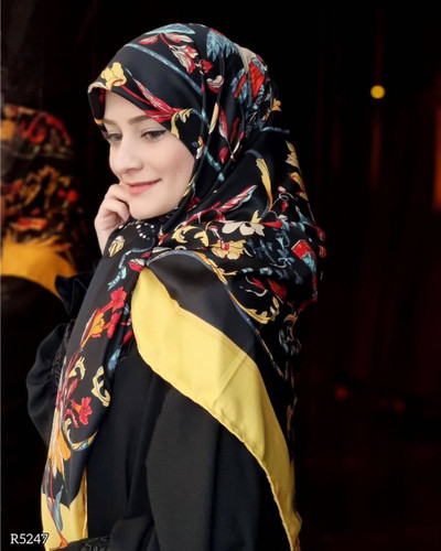 روسری ابریشم کیفیت مستر ریشه سوزنی مشکی