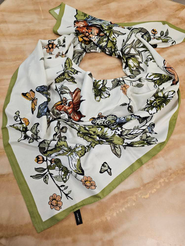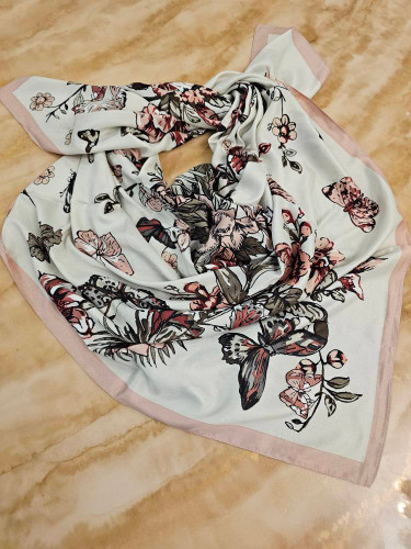 روسری ابریشم ژاکارد کرم سایز ۱۱۰