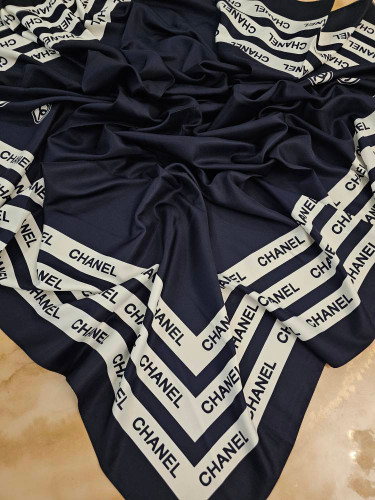 روسری ابریشم ژاکارد سورمه ای سایز ۱۱۰