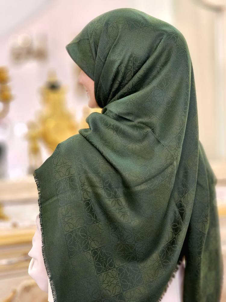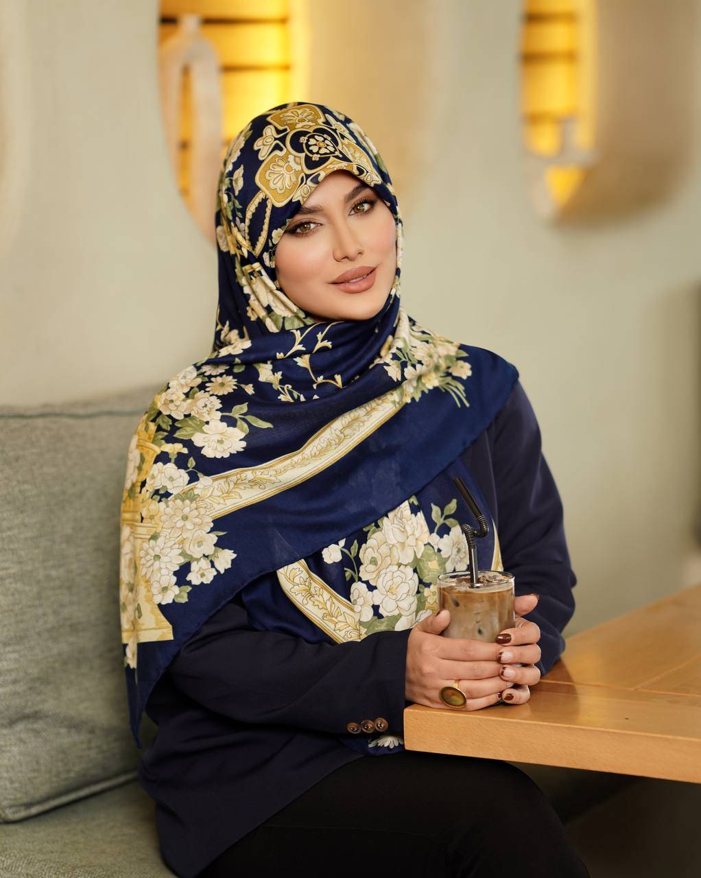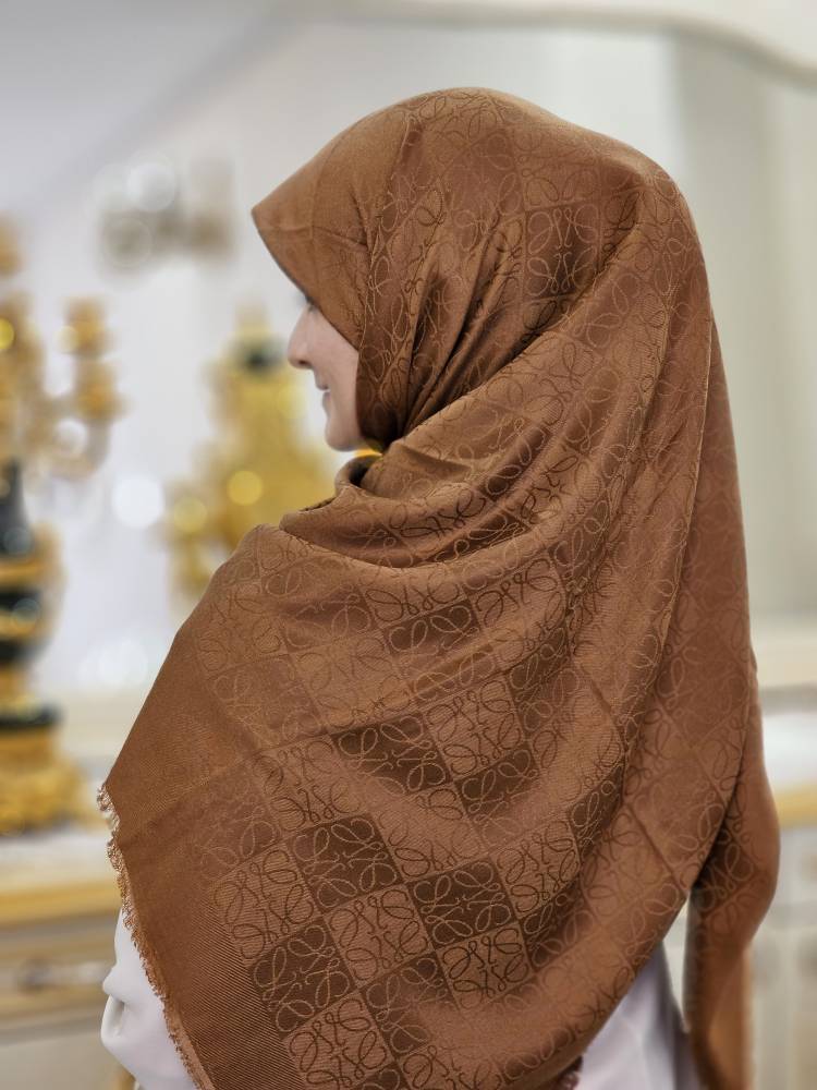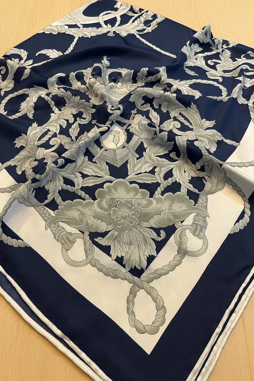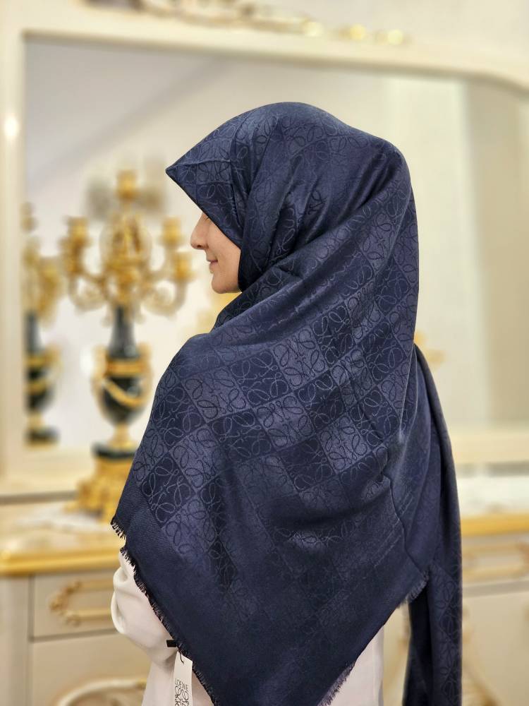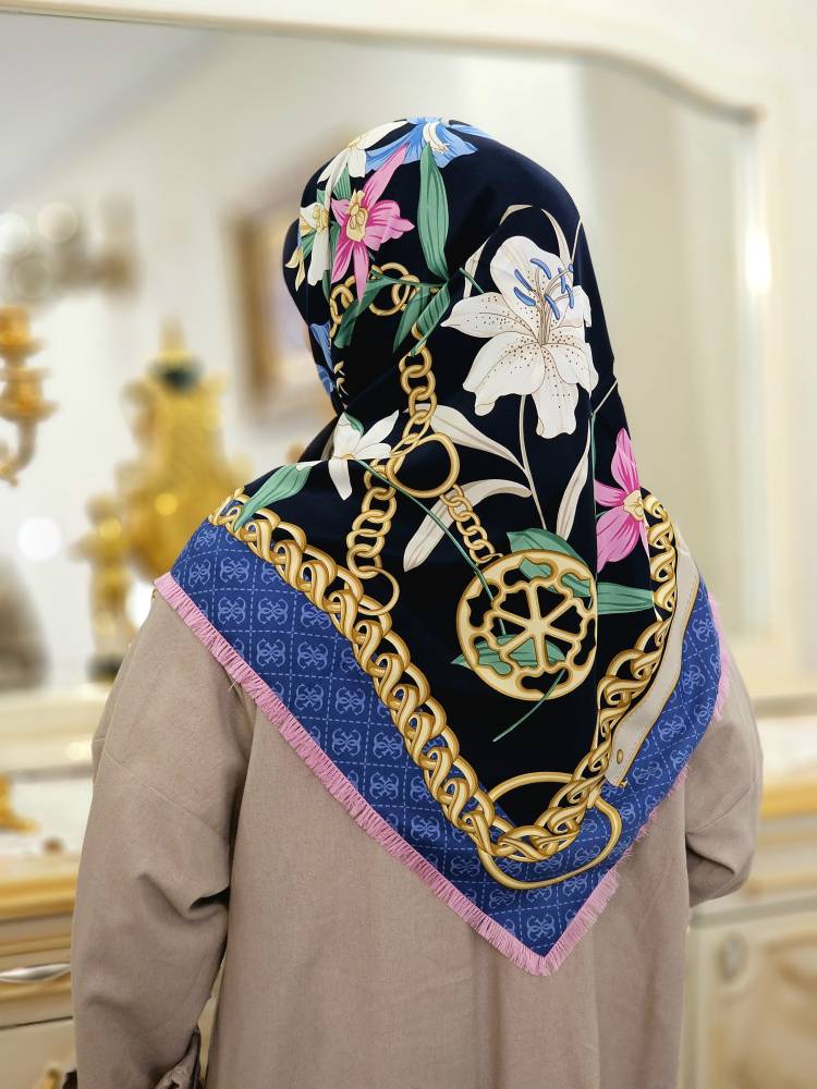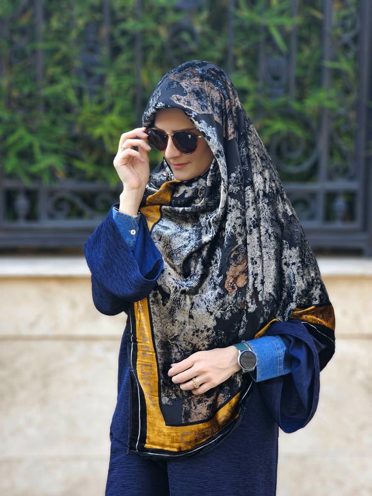 روسری ابریشم ژاکارد سورمه ای نسکافه ای