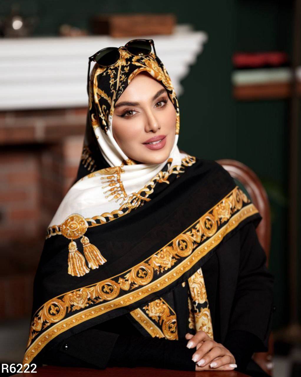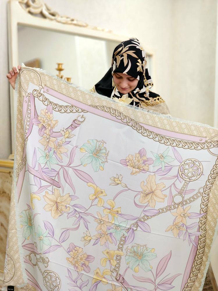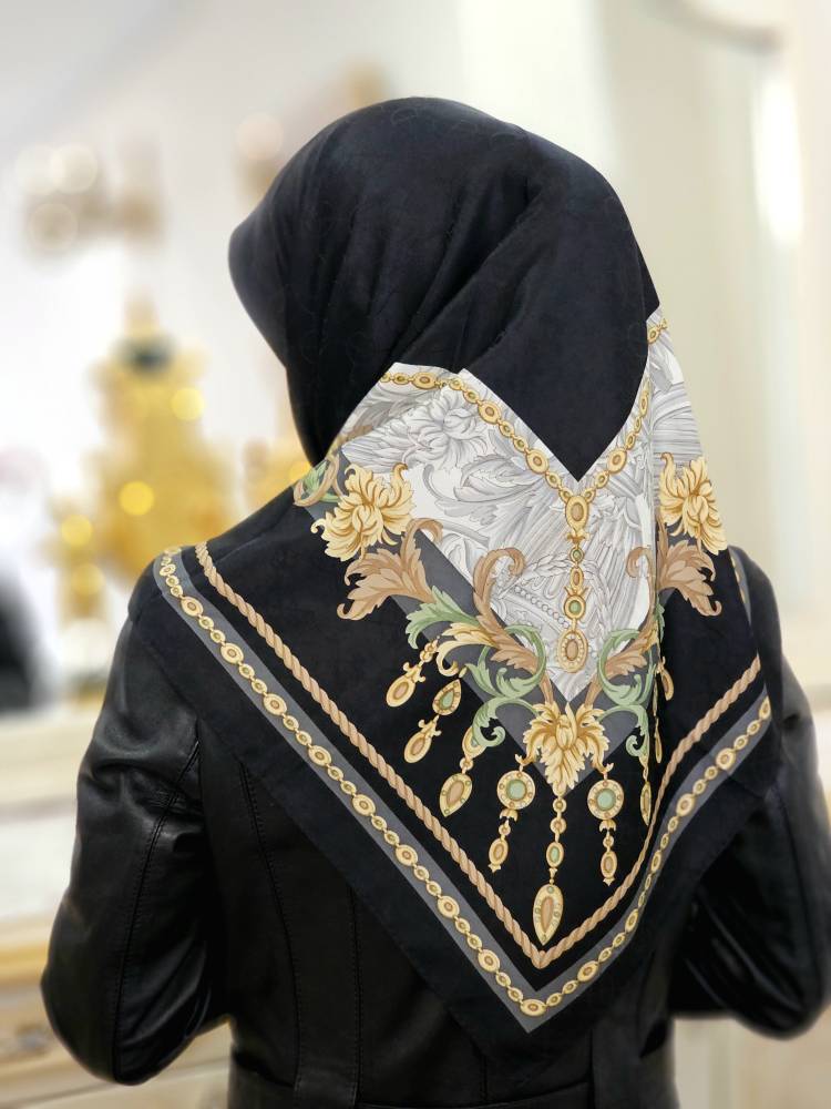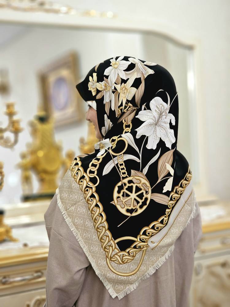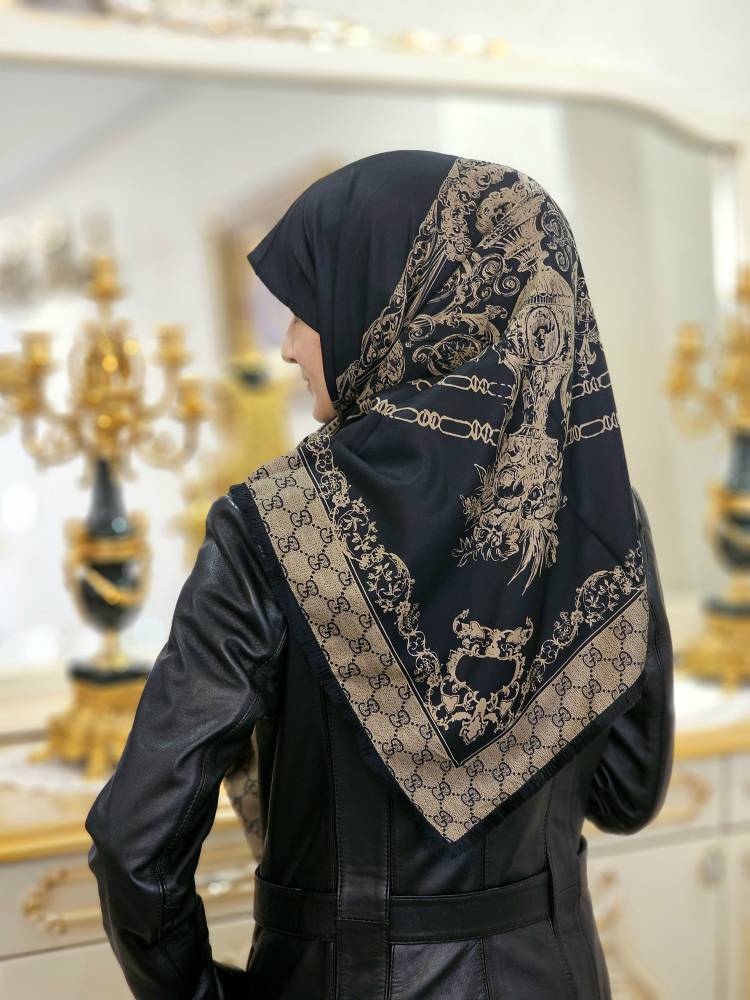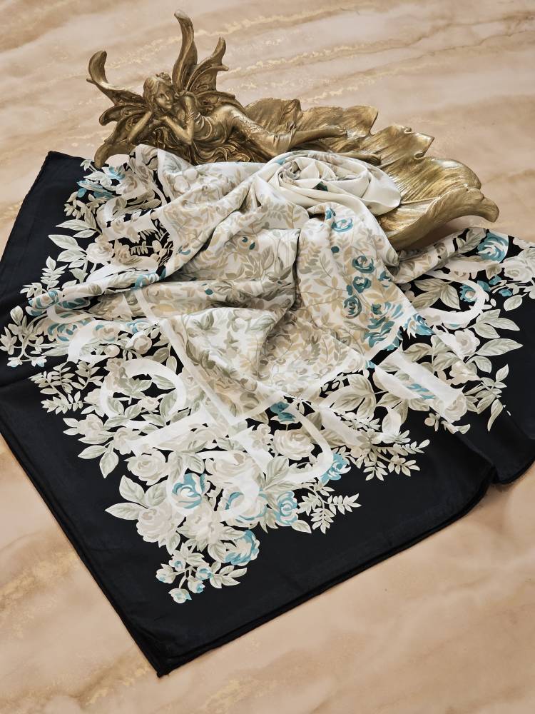 روسری ابریشم ژاکارد وارداتی مشکی کرم