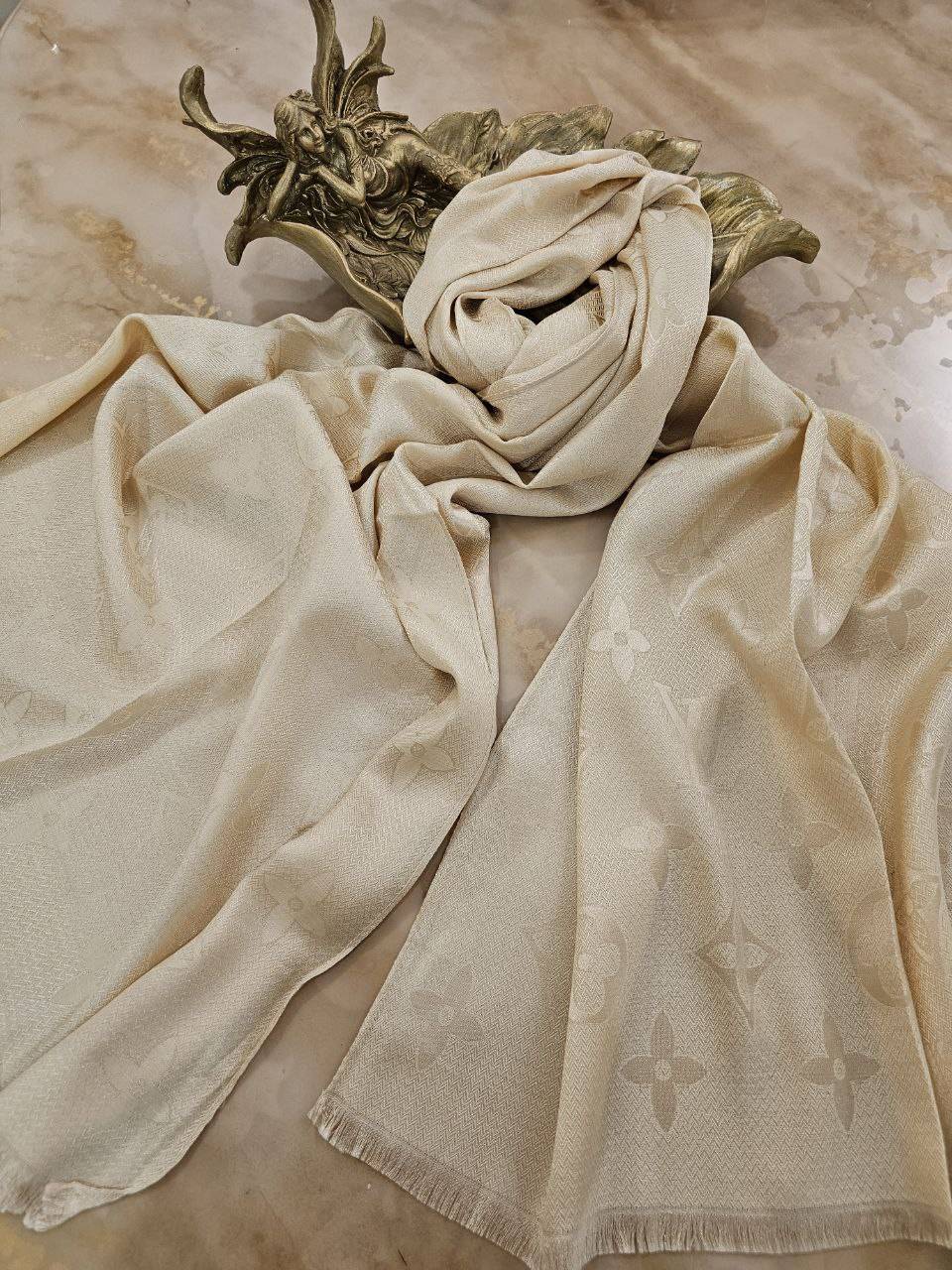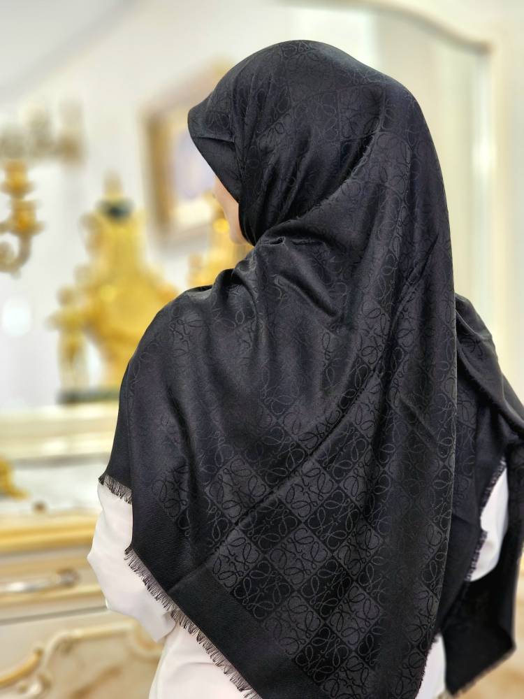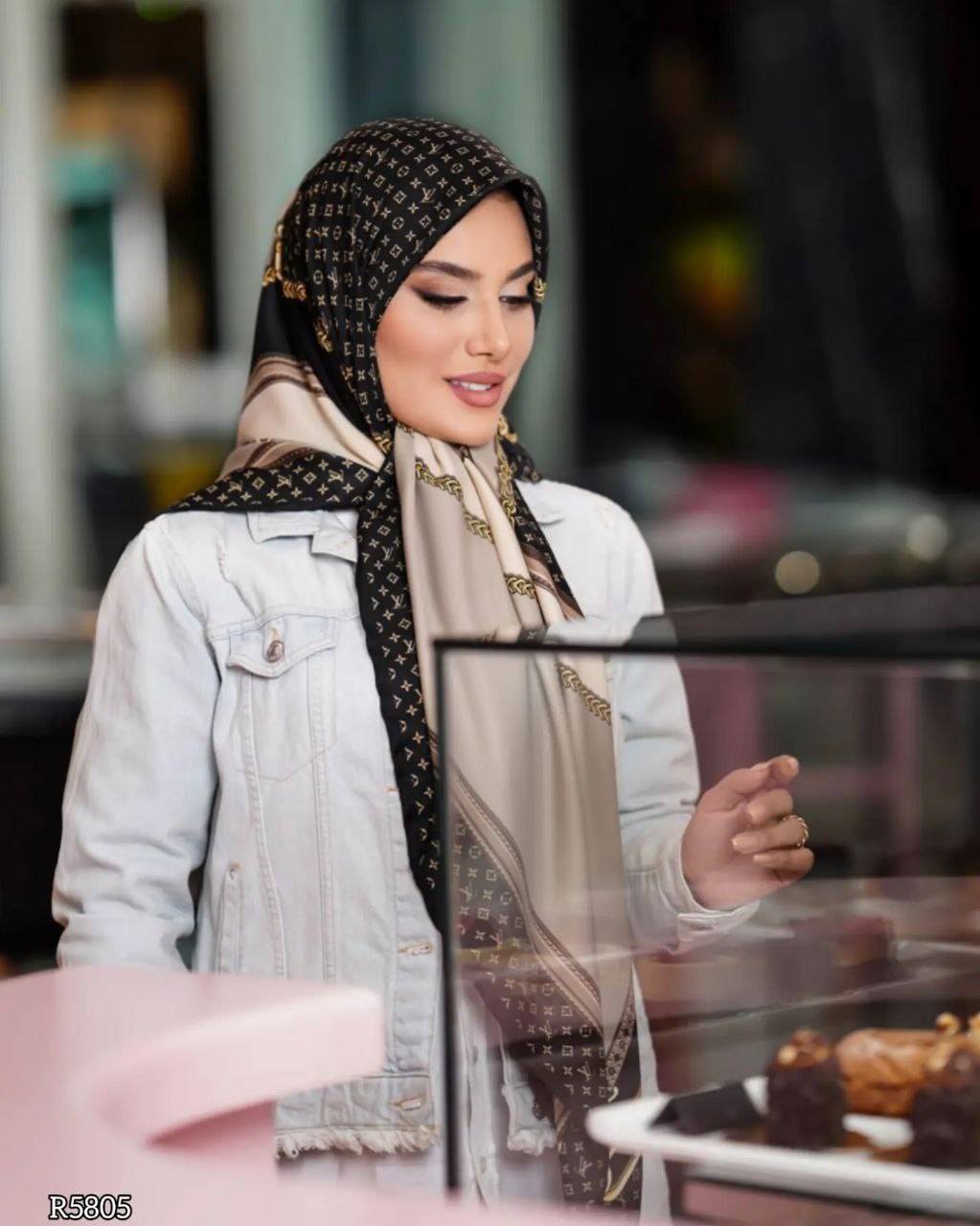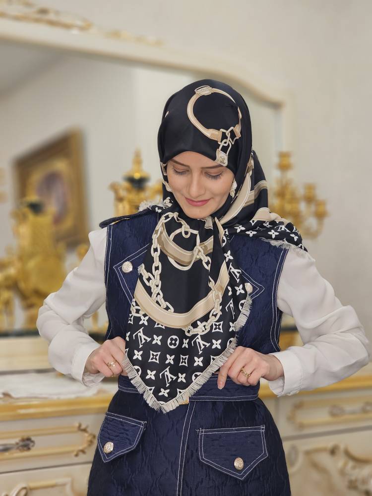روسری ابریشم ژاکارد وارداتی مشکی کرم
