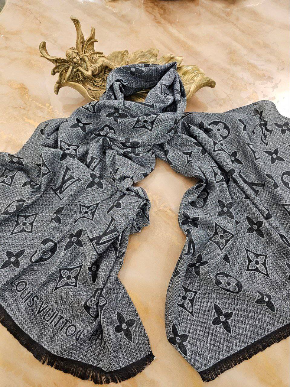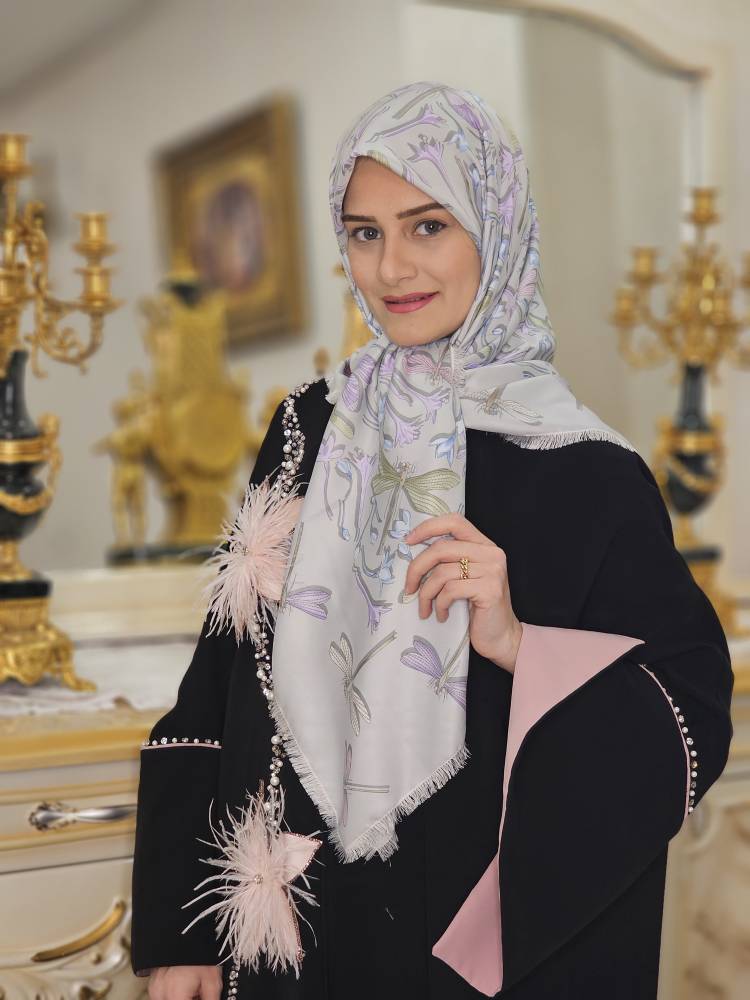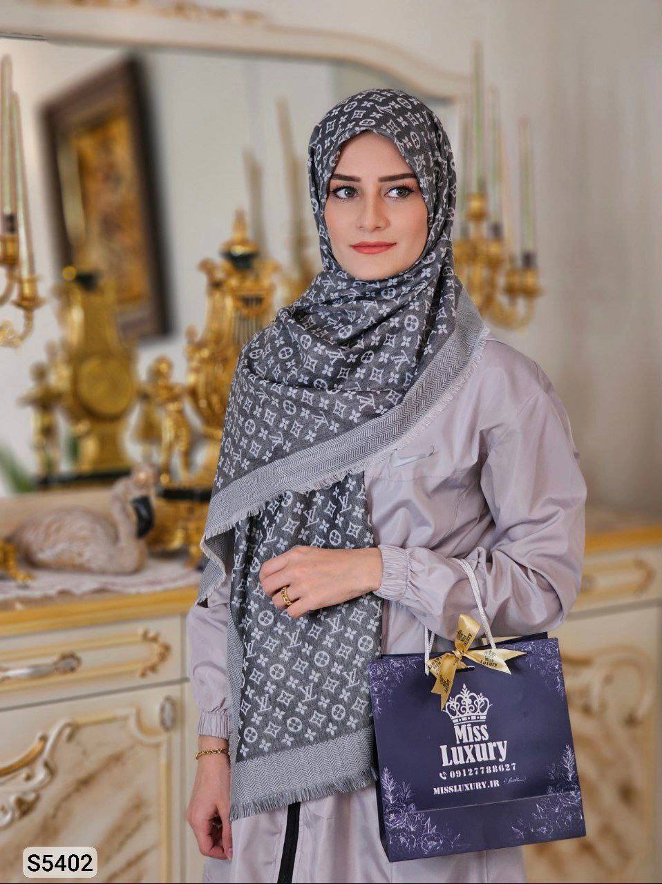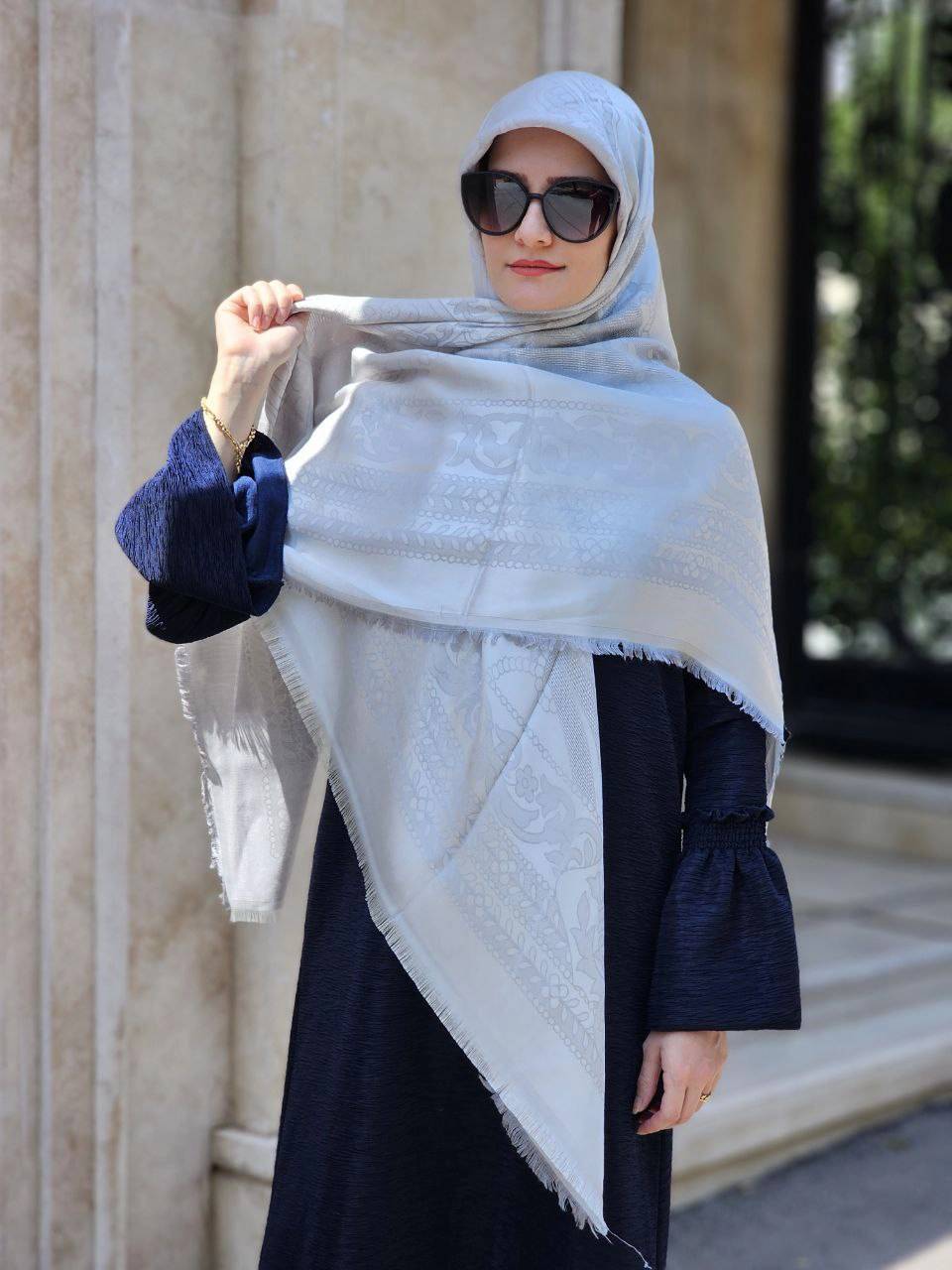 روسری ابریشم توییل ژاکارد طوسی مشکی