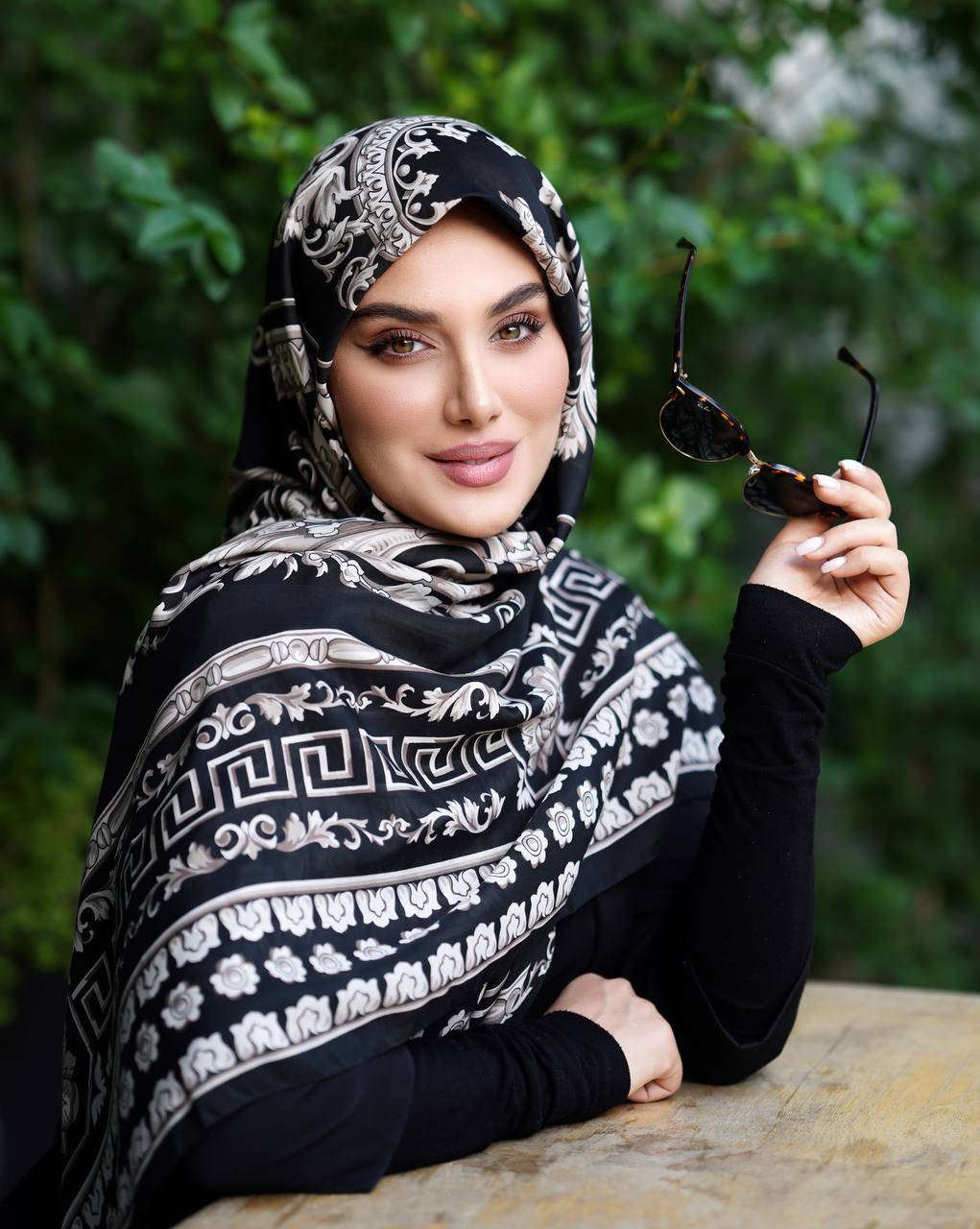 روسری ابریشم کیفیت مستر ریشه سوزنی مشکی
