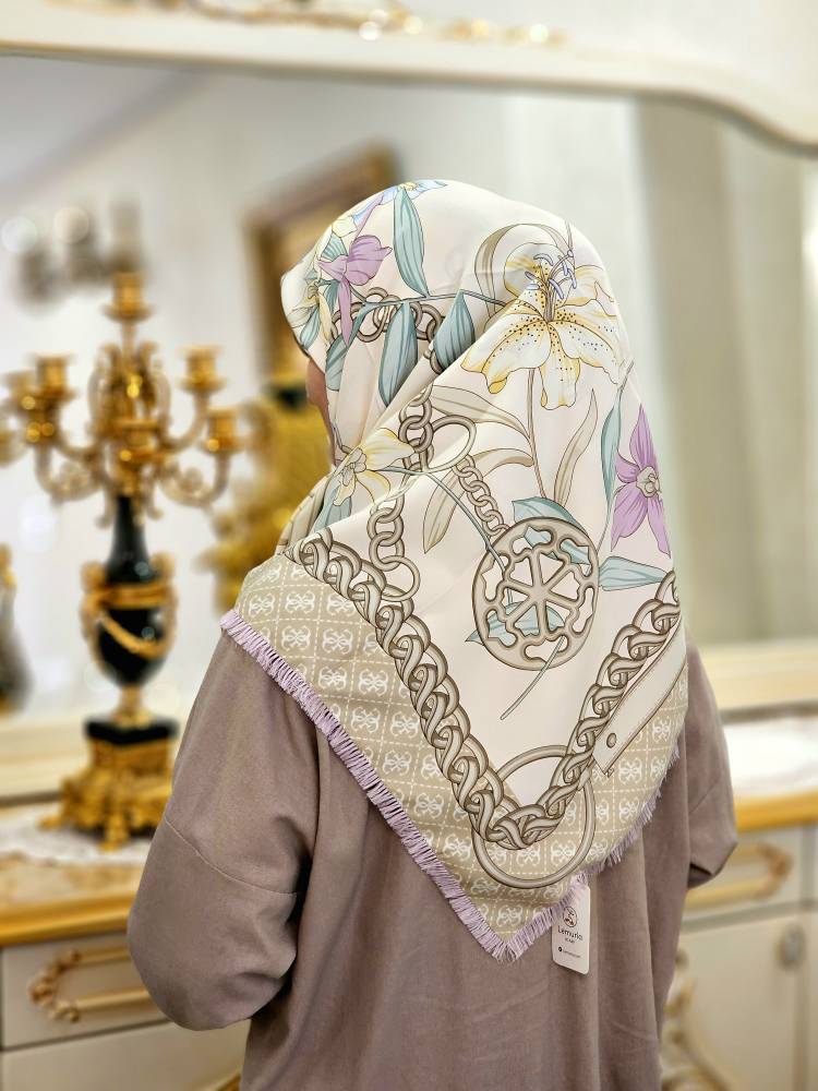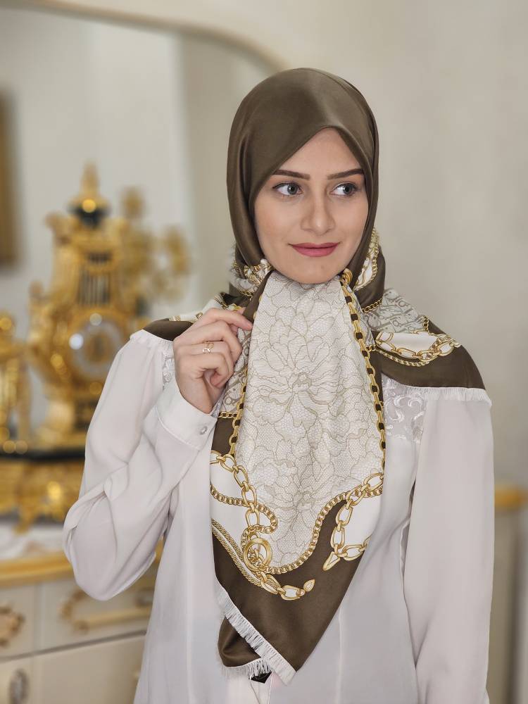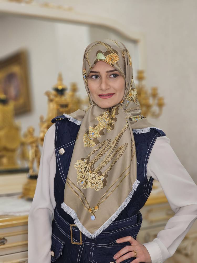 روسری ابریشم مستر ریشه سوزنی نسکافه ای