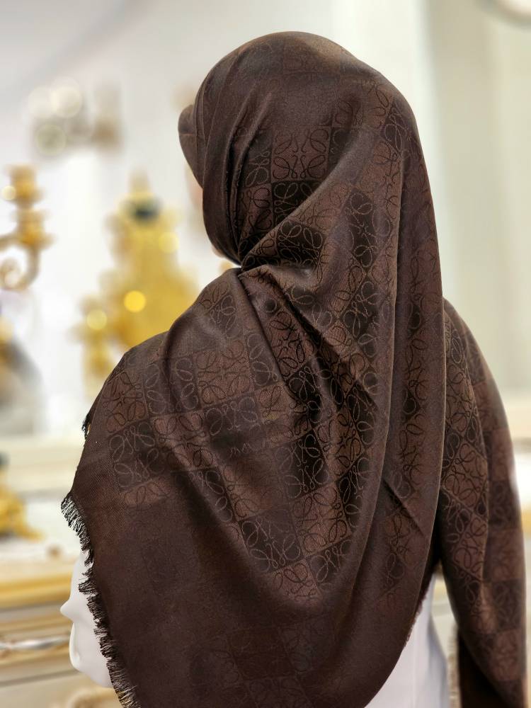 روسری توییل ابریشم ژاکارد مشکی نسکافه ای