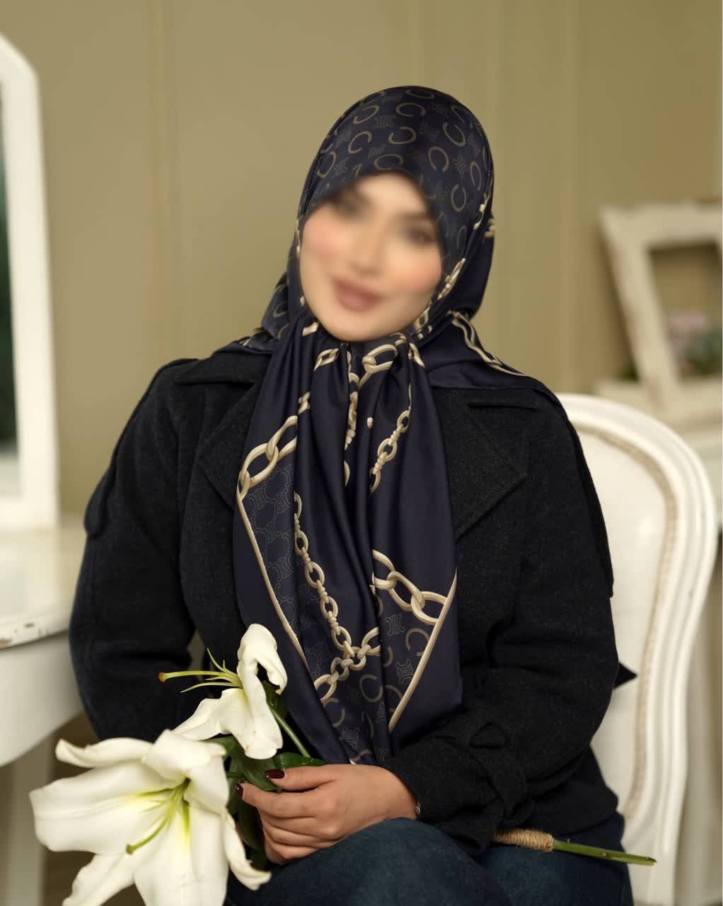 روسری ابریشم ژاکارد سورمه ای سایز ۱۱۰
