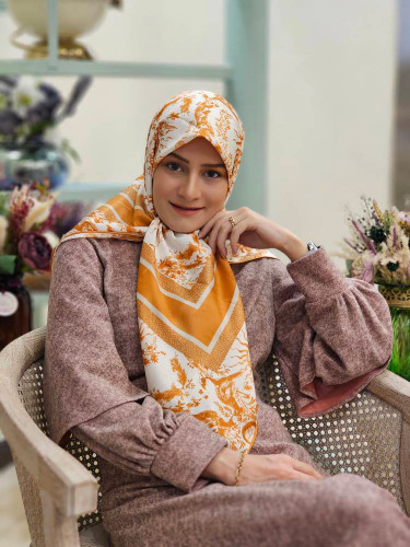 روسری ابریشم ژاکارد نارنجی