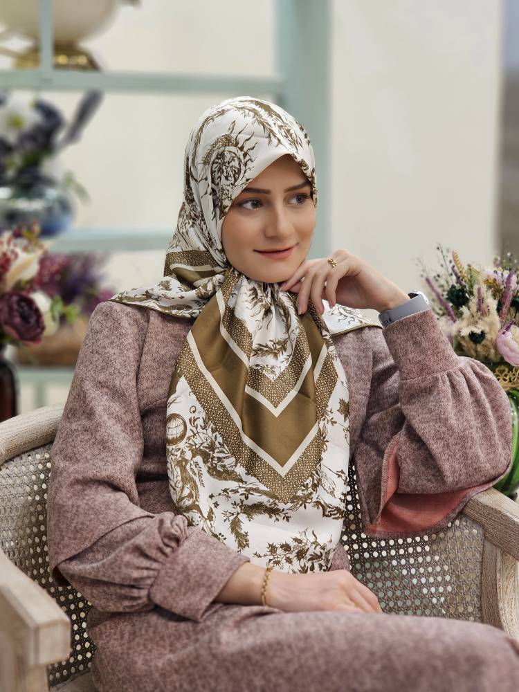 روسری ابریشم توییل نسکافه ای