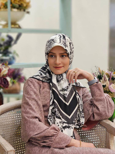 روسری نخ بهاره کرم مشکی