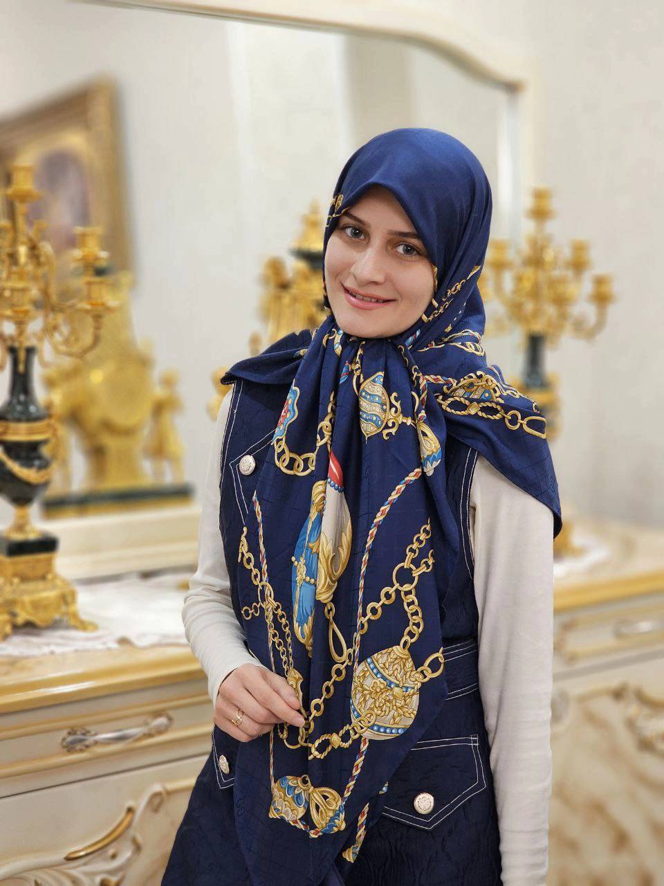 روسری ابریشم ژاکارد سورمه ای طلایی