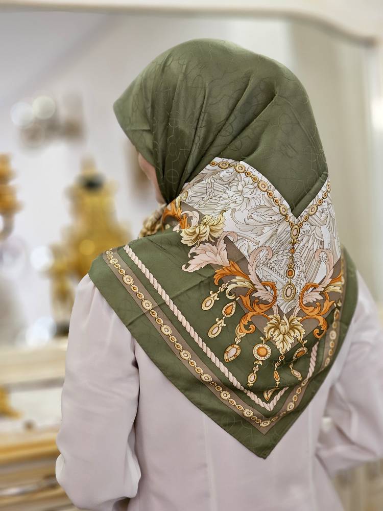 روسری ابریشم ژاکارد سبز