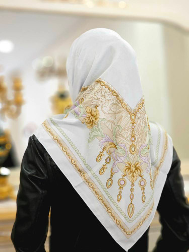 روسری ابریشم ژاکارد وارداتی سفید